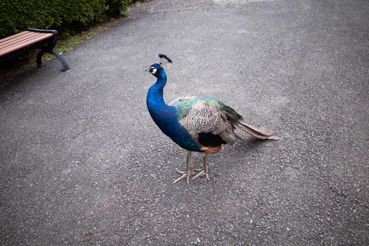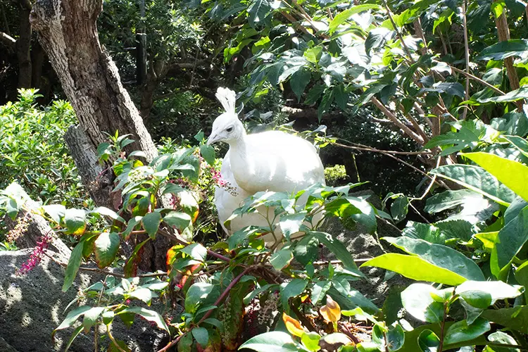 園内を歩いていると、クジャクにも何度も遭遇しました。檻の中ではなく、園内を自由に闊歩しています。こんな触れられそうな近いところに、珍しい生き物が…!レアポケモンがその辺をたくさんウロウロしているような感覚です。