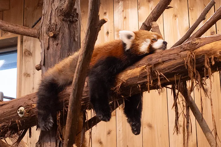 また、楽しみにしていたレッサーパンダ。木の上で腕をだらんとさせて休む姿は思わず笑みがこぼれて癒されますね。二匹が木の上を行ったり来たりしていて、その愛らしい動きに人だかりができていて、いい瞬間を写真を収めようとみんな必死にカメラを構えていました。私も何枚も撮ったのですが、動きが速くてなかなか難しかったです。