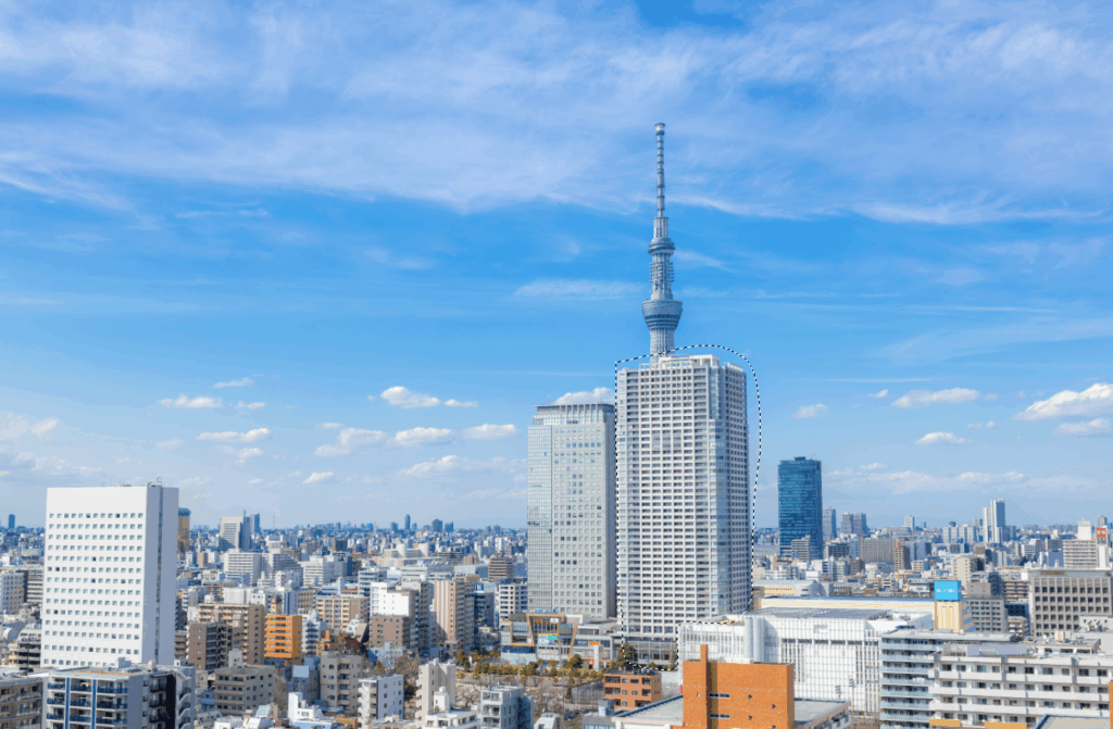 元画像を用意し、選択ツールでスカイツリーを隠しているビルだけを選択します。