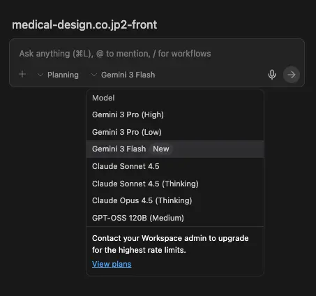 更新業務で必要になるコード生成は、そこまで大量ではないため、実際の作業では Gemini 3 Pro(Low)& Fastモード でも十分に対応できています。